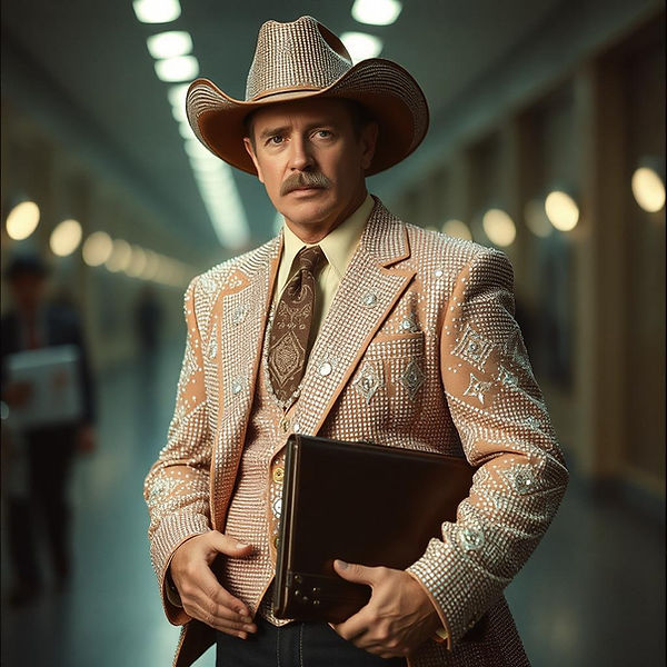 Virgil and I finally made it to the Tarot Realms. After awhile, I felt like I needed to fight fascism in one of the nether realms that we had traversed through. I ended up back in Sod Land, which seemed at first to have a "soft" form of fascism--a place where I might be able to make a difference, in other words. First, of course, I needed to find a job. I applied at a corporation, and a few days later a secretary invited me to a job interview. When I stepped into the office, I noticed black clouds hanging above the large table in the middle of the room. Already a bit nervous, I tried my best to avoid looking at the strange clouds as the interviewers asked me questions. I said whatever they wanted to hear and smiled a lot and tried to appear friendly to everyone in the room. After the interview, a secretary called me and asked me to come in to meet my new boss, who wanted to give me a tour of the office. After I arrived, my new boss, dressed in a rhinestone suit, shook my hand and guided me through the office to meet some of my coworkers.