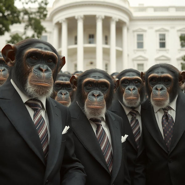 Virgil squinted at the politicians. "The King is probably holding court right now," he grunted. "It's better to be a poor chimp than a sycophant. Let's get out of here!" Virgil and the Fool nodded at each other and eventually found another path to the Tarot Realms.